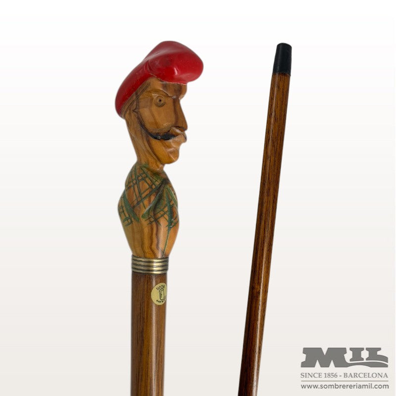 Bastón Salvador Dalí de Finna está al completo fabricado con madera de olivera hecho a mano en España. Puño con diseño de cabeza del pintor surrealista Salvador Dalí y contera con un tapón de madera. Es un bastón para coleccionistas pero si se quiere para un uso propio en tienda se lo ajustan a la altura preferente.