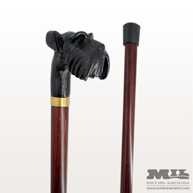 Bastón Scottish terrier Negro de Finna está al completo fabricado con madera de olivera hecho a mano en España. Puño con diseño de cabeza de un perro raza Scottish terrier negro y contera con un tapón de madera. Es un bastón para coleccionistas pero si se quiere para un uso propio en tienda se lo ajustan a la altura preferente.