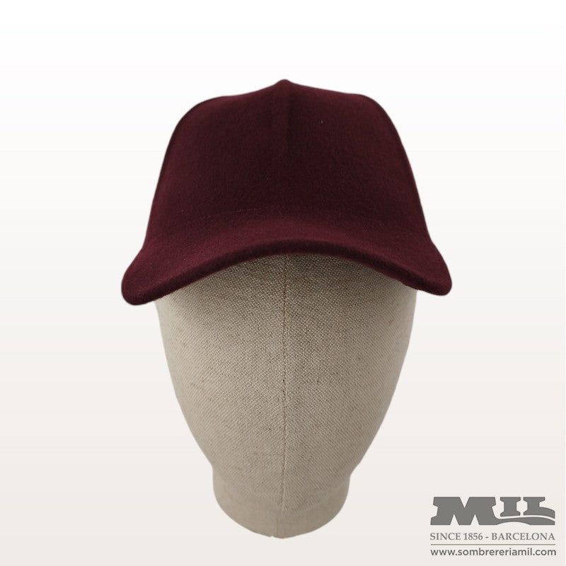 Gorra Baseball de Borsalino fabricada con fieltro de lana ideal para temporada de otoño e invierno. Como elementos de decoración la gorra tiene unos pequeños plieges que van del centro de la cabeza hacia fuera. El color granate la hacae elgante elegante y casual.