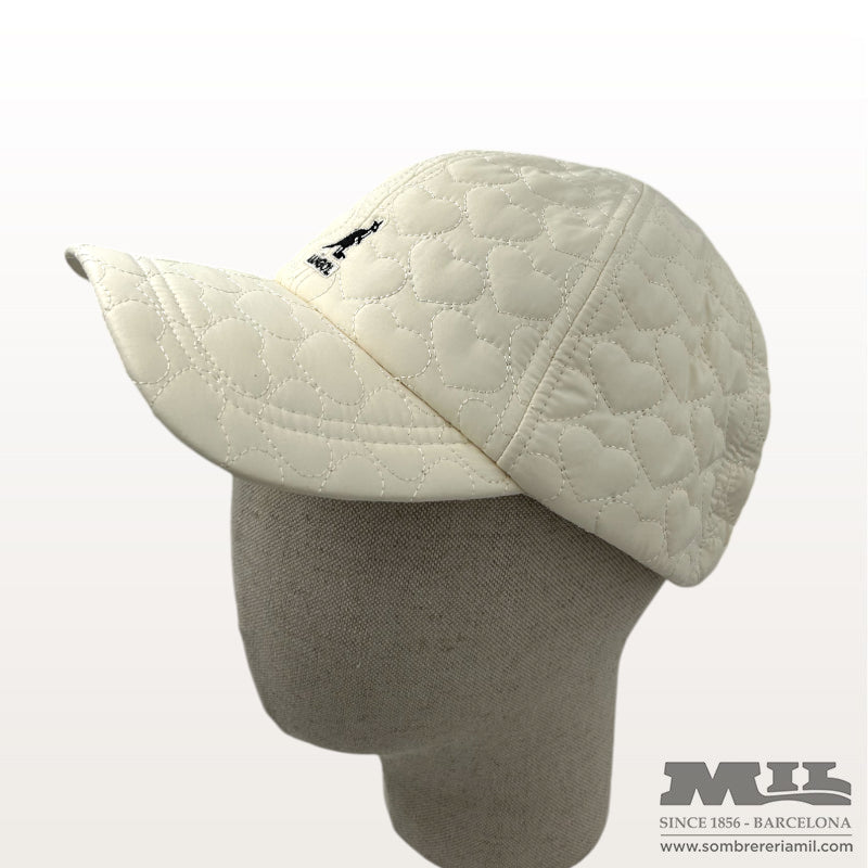 Gorra Fun Puff Kangol de invierno estilo acolchado con estampado de corazones bordados le dan un look único. El logo de Kangol está bordado en la parte frontal. La gorra protege el frío gracias a su forro interior de lana polar. Además podrás ajustarla a tu medida con el elástico en la parte de atrás de la gorra.