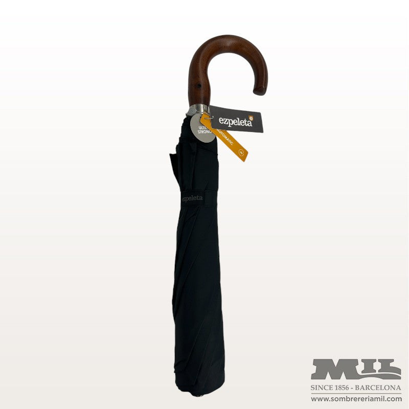 Paraguas automático de Ezpeleta con 10 varillas Ultra fuerte, en color negro con su funda para guardarlo cómodamente y protegerlo.