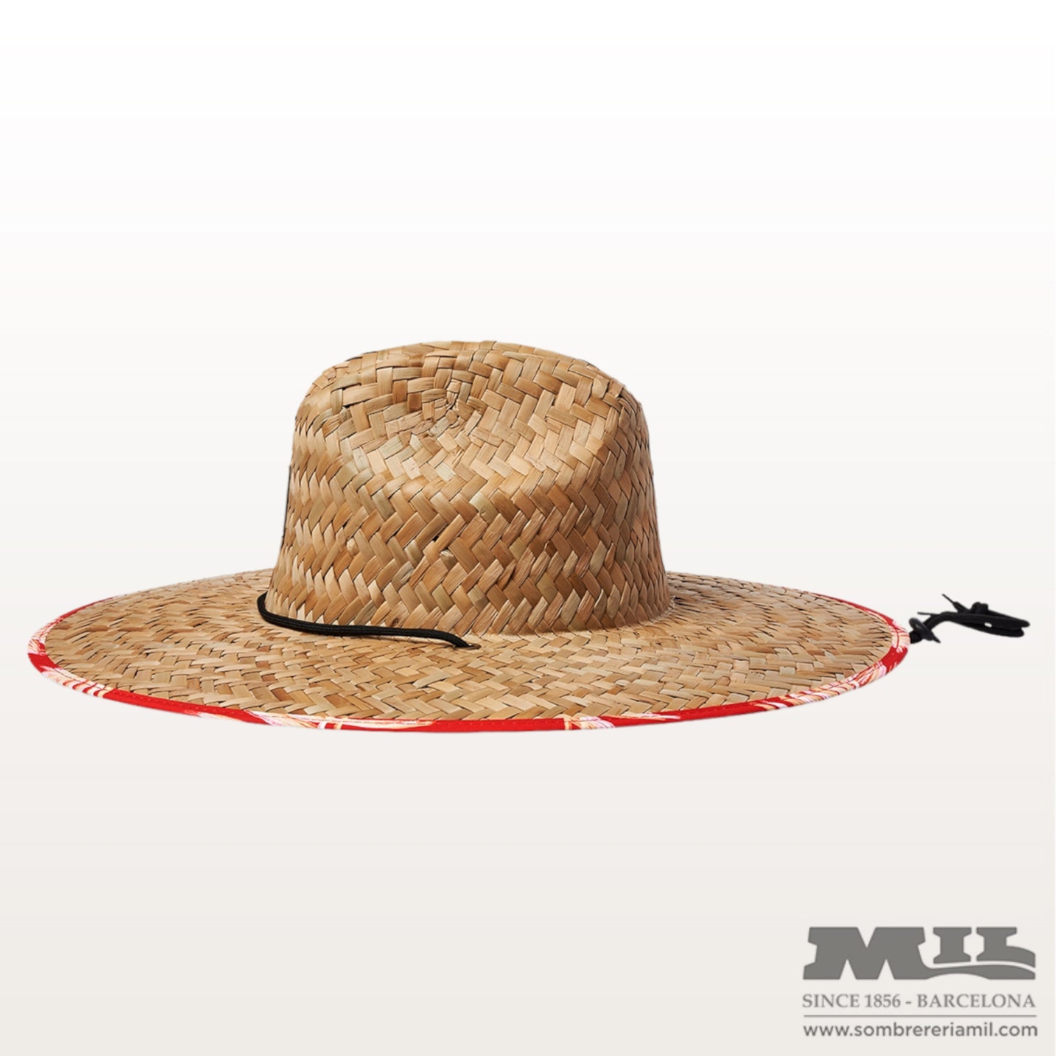 El sombrero Alpha Square Sun Hat, es un fedora moderno muy sencillo pero a la vez muy cañero, el estampado tropical en el borde del ala le da un toque veraniego y su gran ala te protegerá estupendamente del sol. En éste caso el sombrero está hecho de una mezcla entre paja y tela de algodón 100% y está acabado con un barbuquejo, una tira con una pieza que permitirá ajustarte el sombrero en caso de viento y también dispone de una badana ajustable por la parte interior de la badana. Ligeramente aprestado.