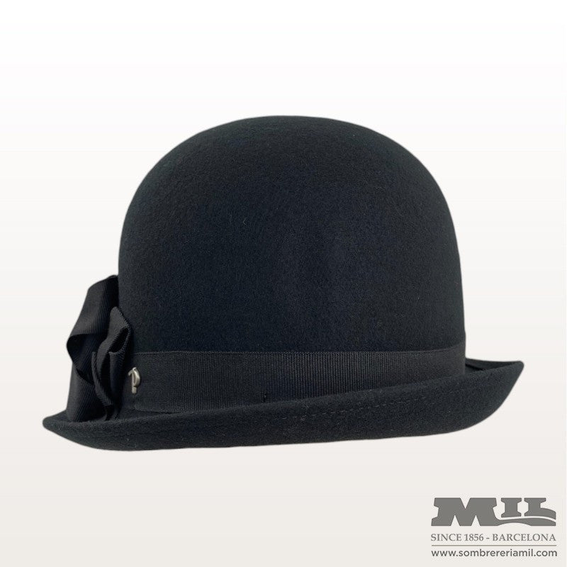 Sombrero Anna de Panizza fabricado 100% fieltro de lana ideal para días frescos. Como elemento de decoración tiene una cinta ancha que rodea todo el sombrero con un lazo en el lateral. Su ala corta con diseño desigual curvada en la parte frontal. Diferente, único y elegante.