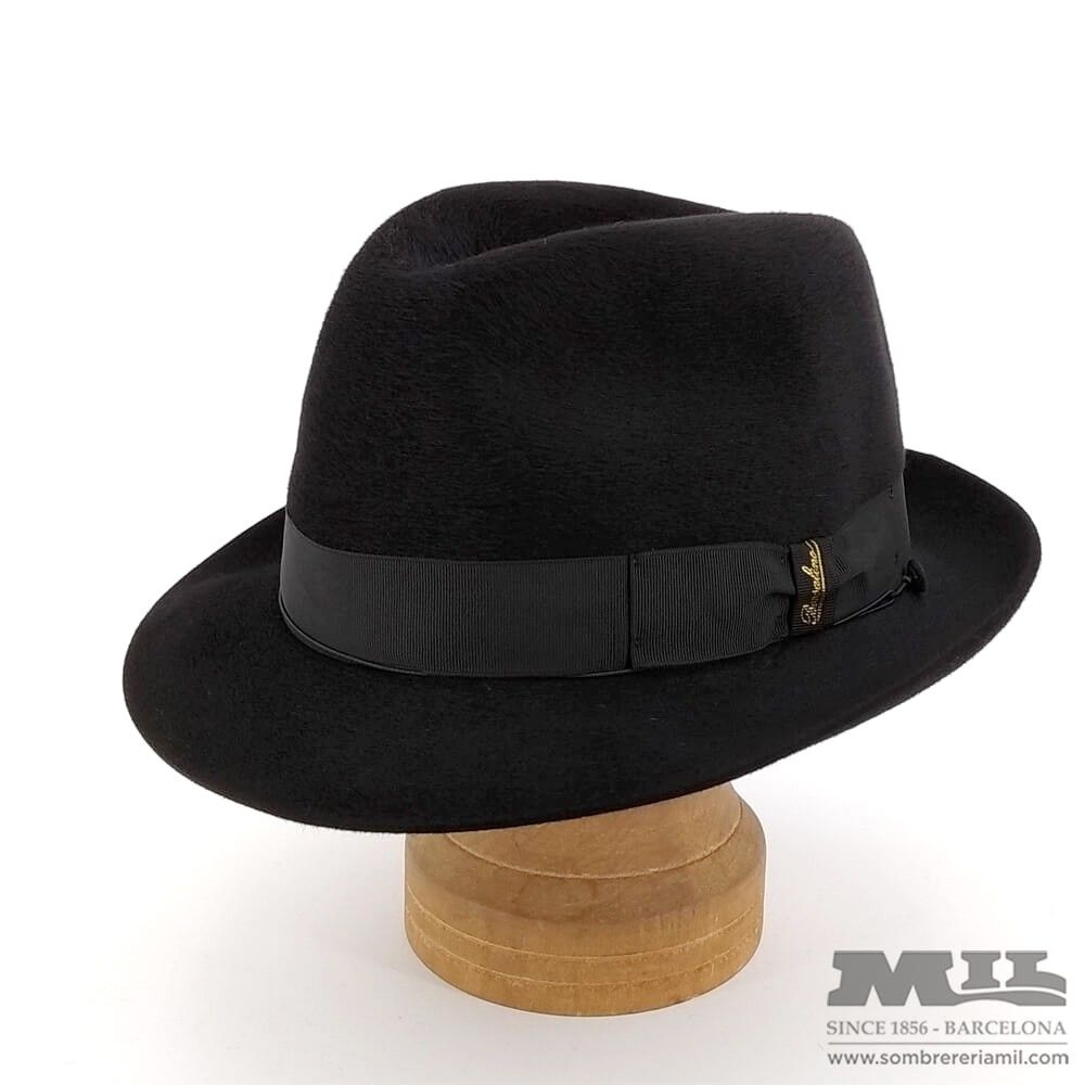 Sombrero fedora hecho con pelo de guanaco de los Andes a través de un raspado, respetando la vida del animal. De la prestigiosa marca Borsalino, la única que tiene permiso para obtener el pelo de este animal. Además su pelo es muy cálido y ligero. Tiene un pin extraible que sirve para fijarlo en la americana como antiguamente. Se entrega dentro de una caja para su perfecta conservación.