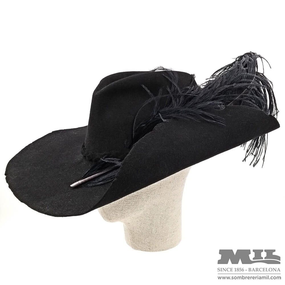 Sombrero Chambergo de Diestro, inspirado en los sombreros chambergos del s.XVI confeccionado a mano con fieltro de pelo de conejo en el taller de Sombrerería Mil. Si buscas un sombrero inspirado en los que usaban los espadachines de la península Ibérica en el s.XVI, ¡lo has encontrado! Solo apto para verdader@s diestr@s.