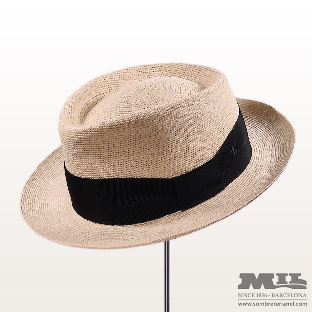Sombrero Panamá Pork Pie Denia de gran calidad para verano o entretiempo con un bonito color de paja natural y cinta clásica. Si buscas un sombrero distinto y especial, esta maravilla de la marca Signes con copa redonda con agujeros permite una transpiración óptima. Todo un clásico con un toque moderno y elegante para ir fresco y seco en todo momento. ¡No lo dudes más y hazte ya con este panamá económico con descuento que encontrarás solo en Sombrerería Mil, en Barcelona desde 1856.