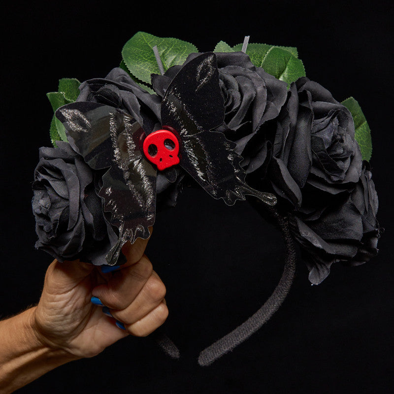 Celebra el Halloween o complementa tu disfraz con este Tocado Las Rosas Negras de fiesta, evento o celebración de la marca Núria Arnau hecho artesanalmente a mano en el taller de Sombrerería Mil para que luzcas como nunca en este día de miedo. El Tocado Las Rosas Negras está fabricado a mano en el taller de Sombrereria Mil situado en la calle Moles de Barcelona por nuestros jovenes artesanos siguiendo la tradición familiar empezada en 1856. Su sistema de fijación con diadema acepta toda clase de peinados y permite una sujeción óptima. Si no disponemos de stock, contacta con Sombrereria Mil y encárgalo.