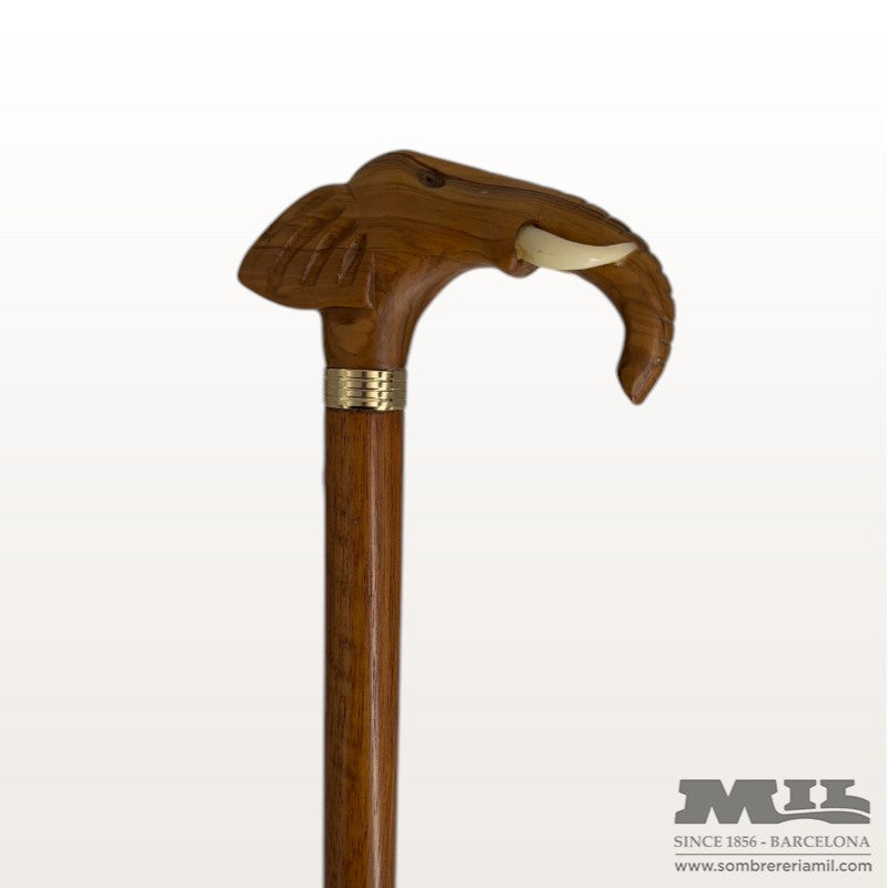Bastón Elefante de Finna está al completo fabricado con madera de olivera hecho a mano en España. Puño con diseño de cabeza de elefante y contera con un tapón de madera. Es un bastón para coleccionistas pero si se quiere para un uso propio en tienda se lo ajustan a la altura preferente.