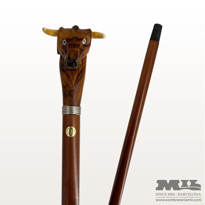 Bastón Toro de Finna está al completo fabricado con madera de olivera hecho a mano en España. Puño con diseño de cabeza de toro y contera con un tapón de madera. Es un bastón para coleccionistas pero si se quiere para un uso propio en tienda se lo ajustan a la altura preferente.