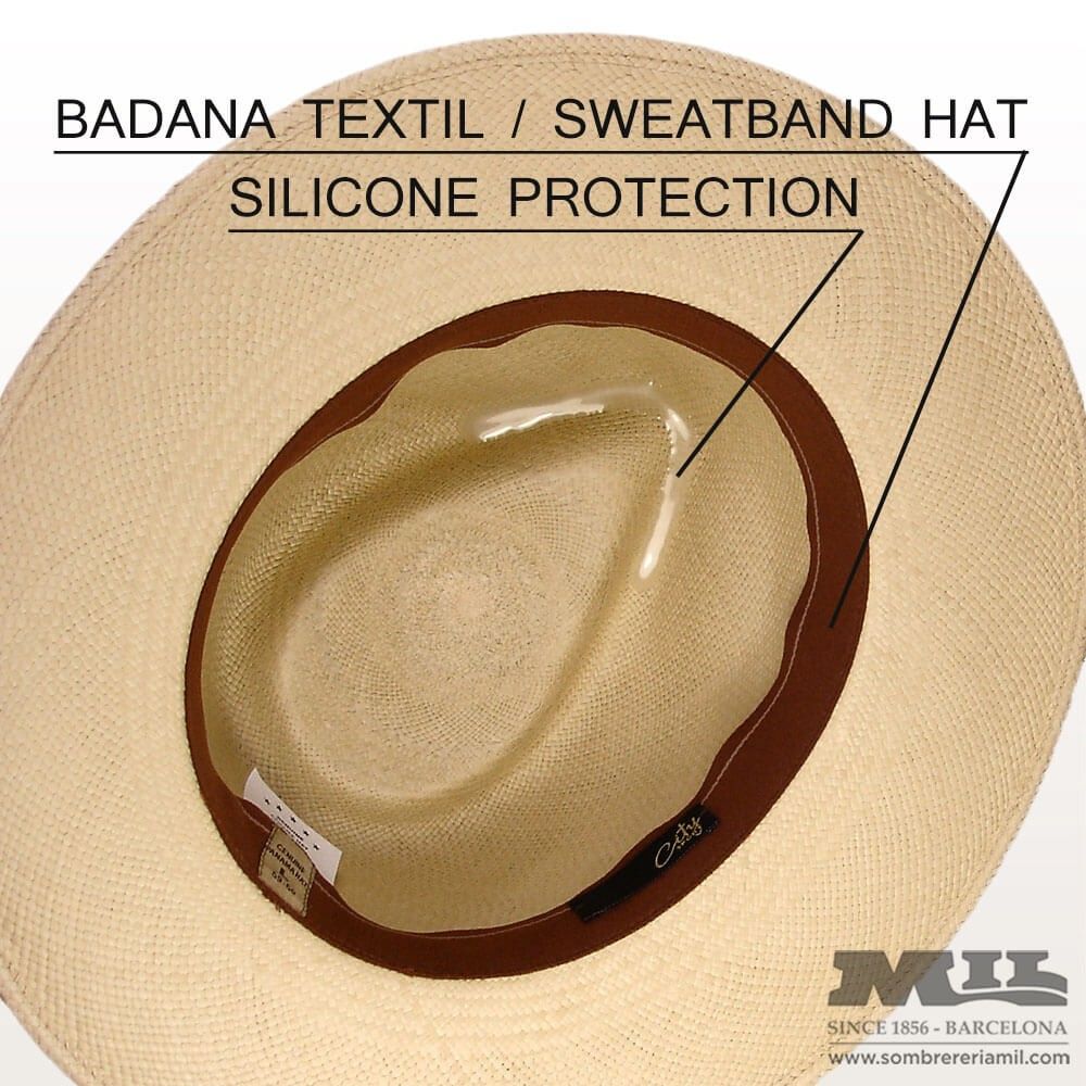 Si quieres un sombrero panamá de gran calidad, el Fashion rigs es un panamá deportivo con un toque elegante para hombre o para mujer perfecto para protegerte del sol y las altas temperaturas durante la primavera y el verano gracias a su ala de 7 cm de diámetro. Un sombrero de estilo casual o deportivo trenzado a mano en Ecuador con paja natural Carludovica Palmata de color semi tostado que permite tanto looks más informales con lino, looks más formales con tejano y camisa y looks más elegantes con zapato y pantalón. Dispone de badana interior textil y refuerzo de silicona en la copa que alarga la vida de la paja en la zona más susceptible.