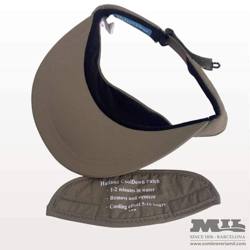 Visera Novel Cooldown de Hatland es fabricado al 100% con polimida. Visera con caracteristica cooldown, tiene una parte que se puede sacar, se sumergue en agua durante 1 minuto o dos, una vez pasado el tiempo de sumergirlo se escurre y se pone en la parte donde más prefieras (en la frente o en la parte trasera de la cabeza). Con esta técnica te mantienes fresco durante 5-10h. Visera que además de protegirte del sol de verano te manttiene fresco.
